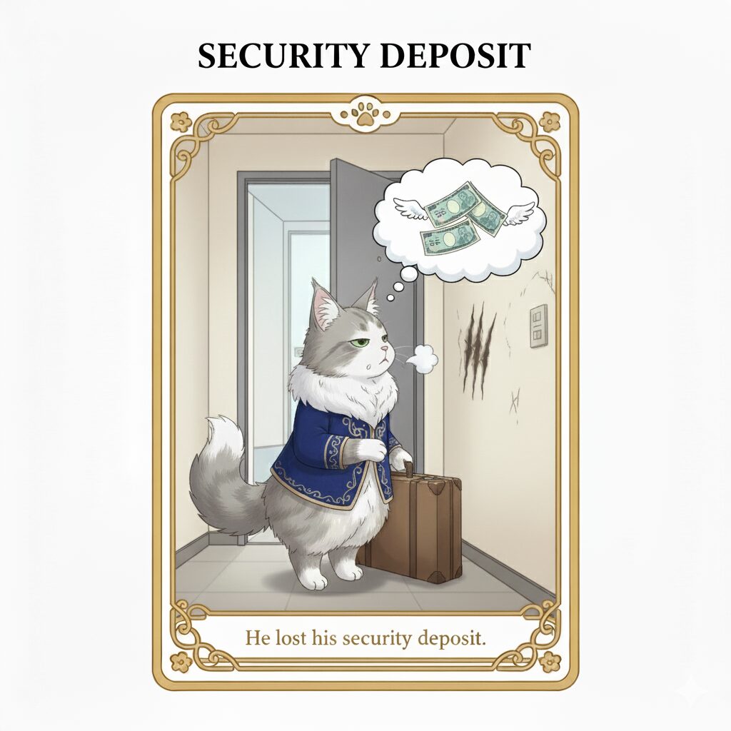 敷金、入居前は気にしますが、効くのは退去時。「security」から違うイメージをしてしまいますが、抜けもれなく確認するために、覚えておきたい単語です。
